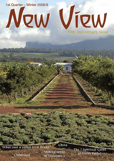 Temporal events have gathered pace in 2008 and we are all in some way concerned with the economic future. New View attempts to gain and offer some understanding for what is happening. G. Benjamin Bingham opens the journey through this issue of New View in Greed, Fear, Leverage and the Downturn writing from the USA with a look at attitudes and mechanisms in the financial world. This is followed by The Real Crunch where Terry Goodfellow investigates the influence of the Chicago School of Economics on economic models and ‘Disaster Capitalism’ throwing much light on how poverty is perpetuated and who is behind this. This, in a certain way, finds a resonance with the plight of Brazilian farmers to get a fair price for their effort in What Cost a Cup of Coffee? by Armando Canales, who brings us news of an inspiring project to help resolve this. And still on the theme of economics, Terence Davies brings a deep exposition of Steiner’s thoughts in this field in Beyond the Boundaries of Economics.